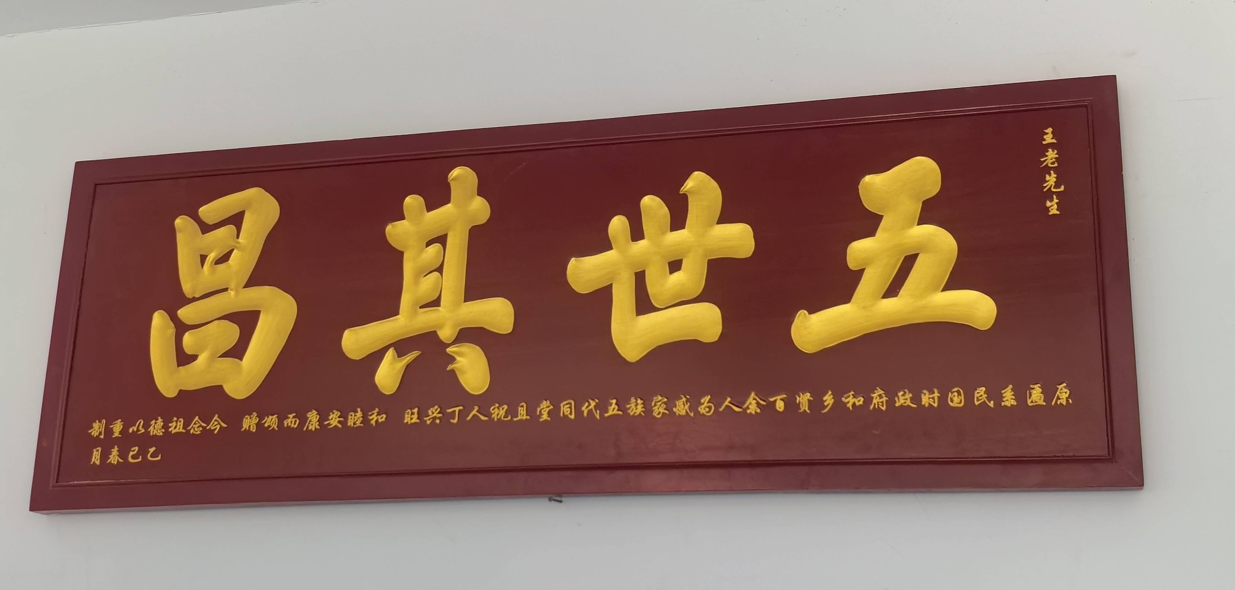 6月22日吉时,复刻匾额正式悬挂于王氏老宅中堂,鎏金大字在阳光下熠熠生辉。仪式上,家族长辈勉励后辈以匾为铭,传承"五世其昌"的家族愿景与"德重相邻"的家风精神。