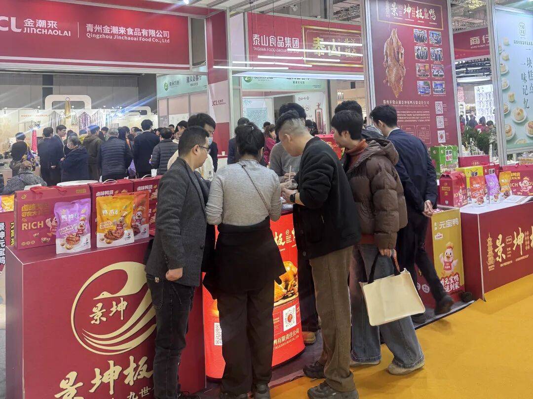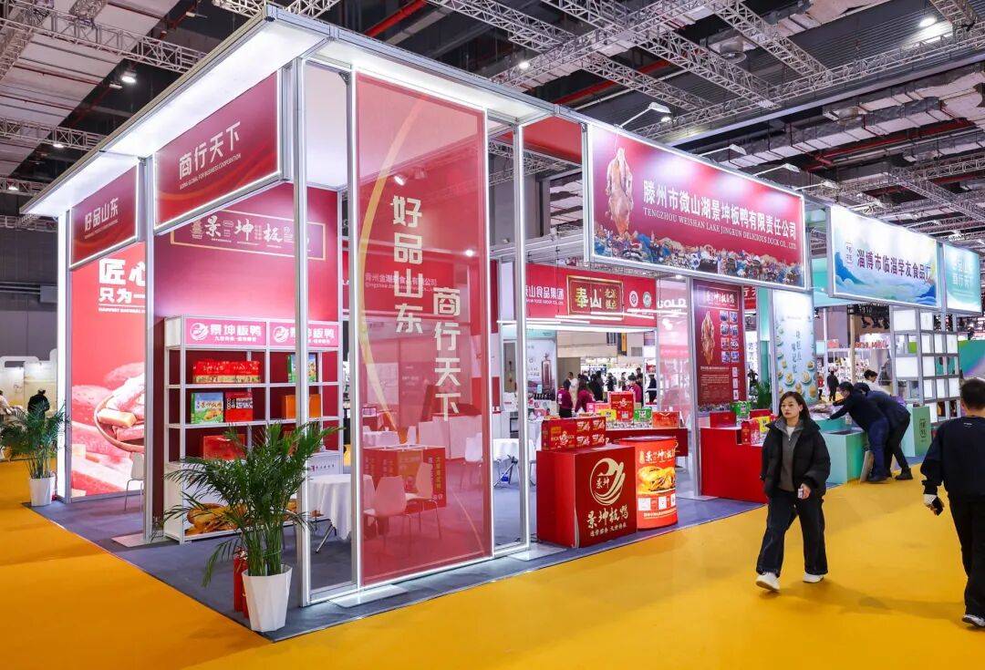 据悉,本次进博优品交易会作为中国国际进口博览会重要延伸平台,被称为“小进博”,是“共享大市场·出口中国”系列活动关键环节。展会采用“展销一体、看样订货、线上线下联动”模式,吸引60多个国家和地区700多家企业参展,重点展销农食、消费品、老字号等“进博优品”,为企业拓展市场提供优质载体。山东省商务厅联合省老字号企业协会遴选推荐的“好品山东”展区同步亮相,集中展现山东制造品质与活力,景坤板鸭作为鲁南美食代表入驻该展区。