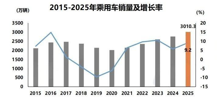 “2026年,我国乘用车总销量将达3025万辆,同比增长0.5%。”中汽协方面预测。